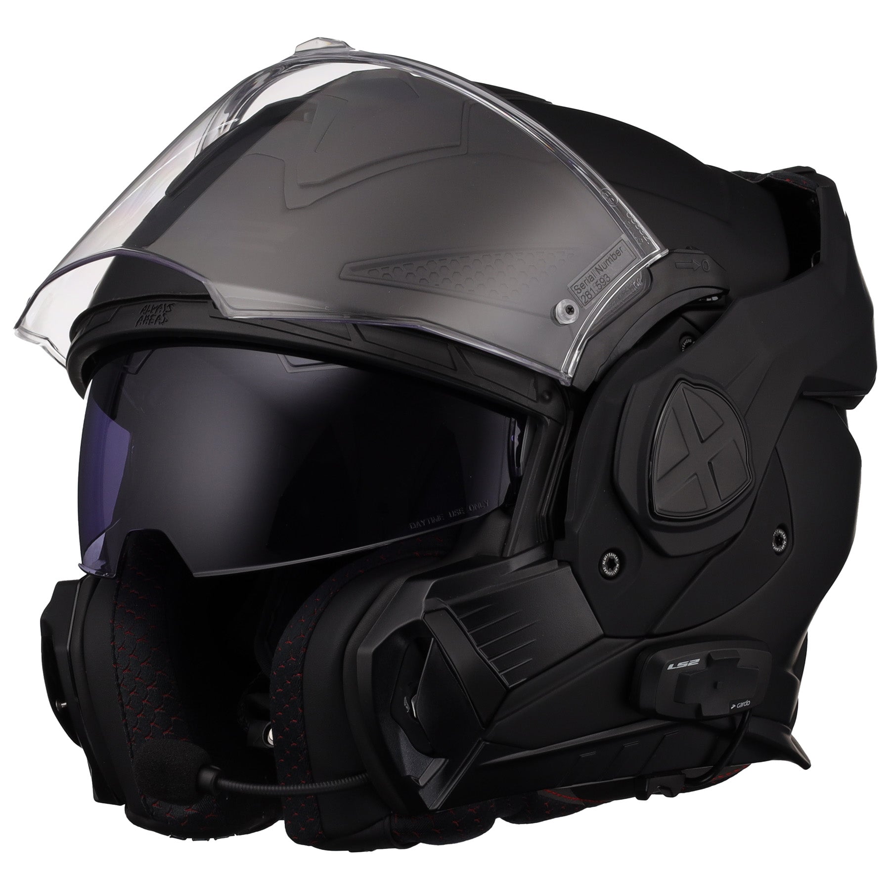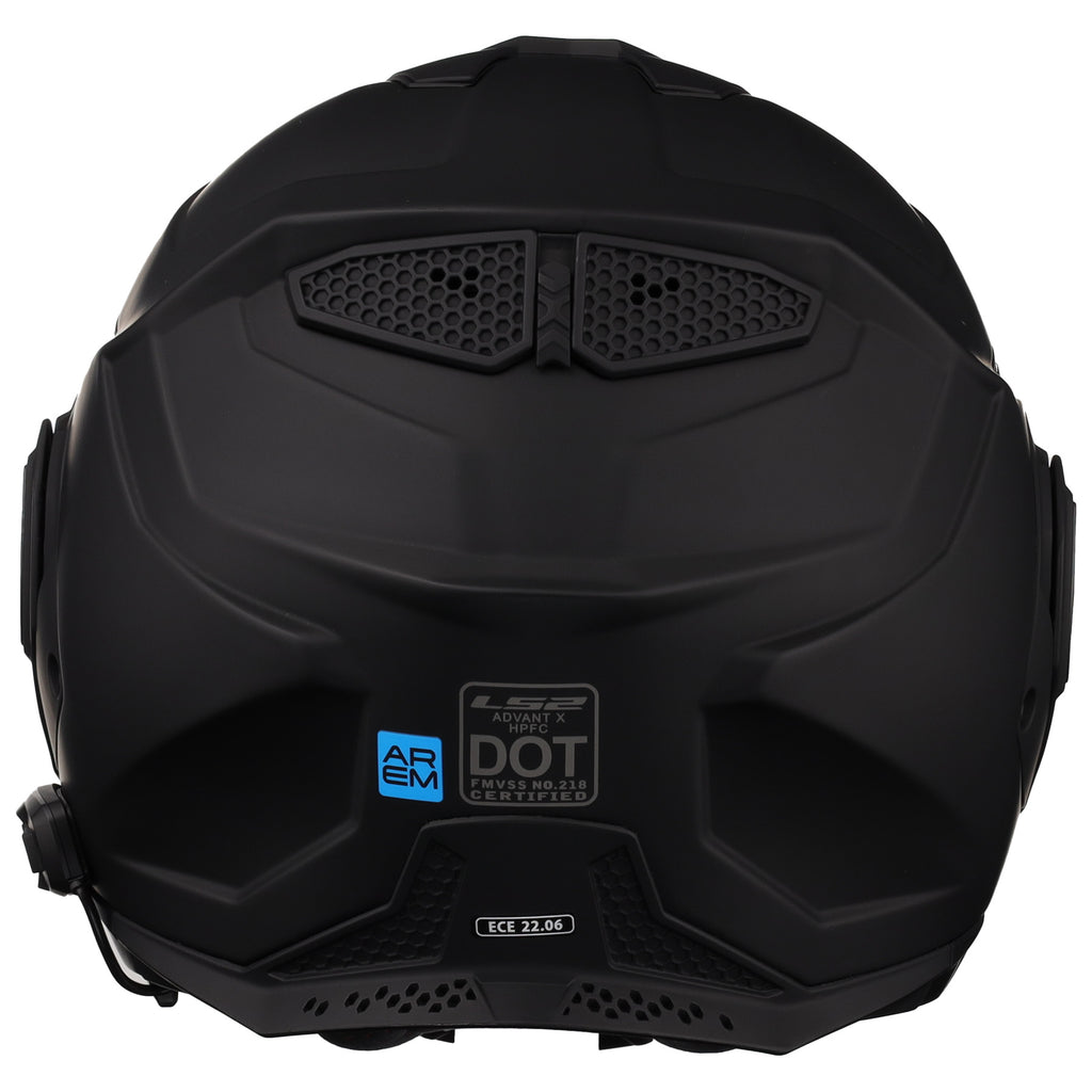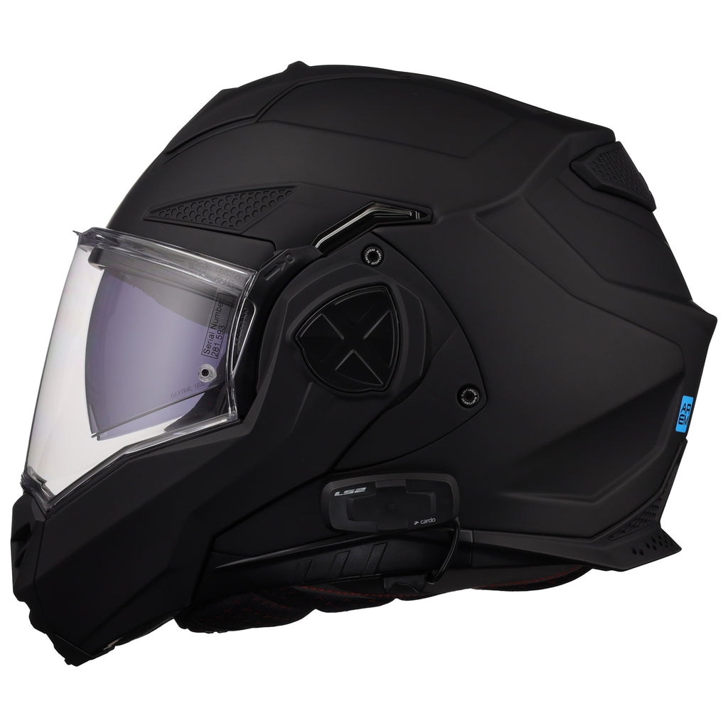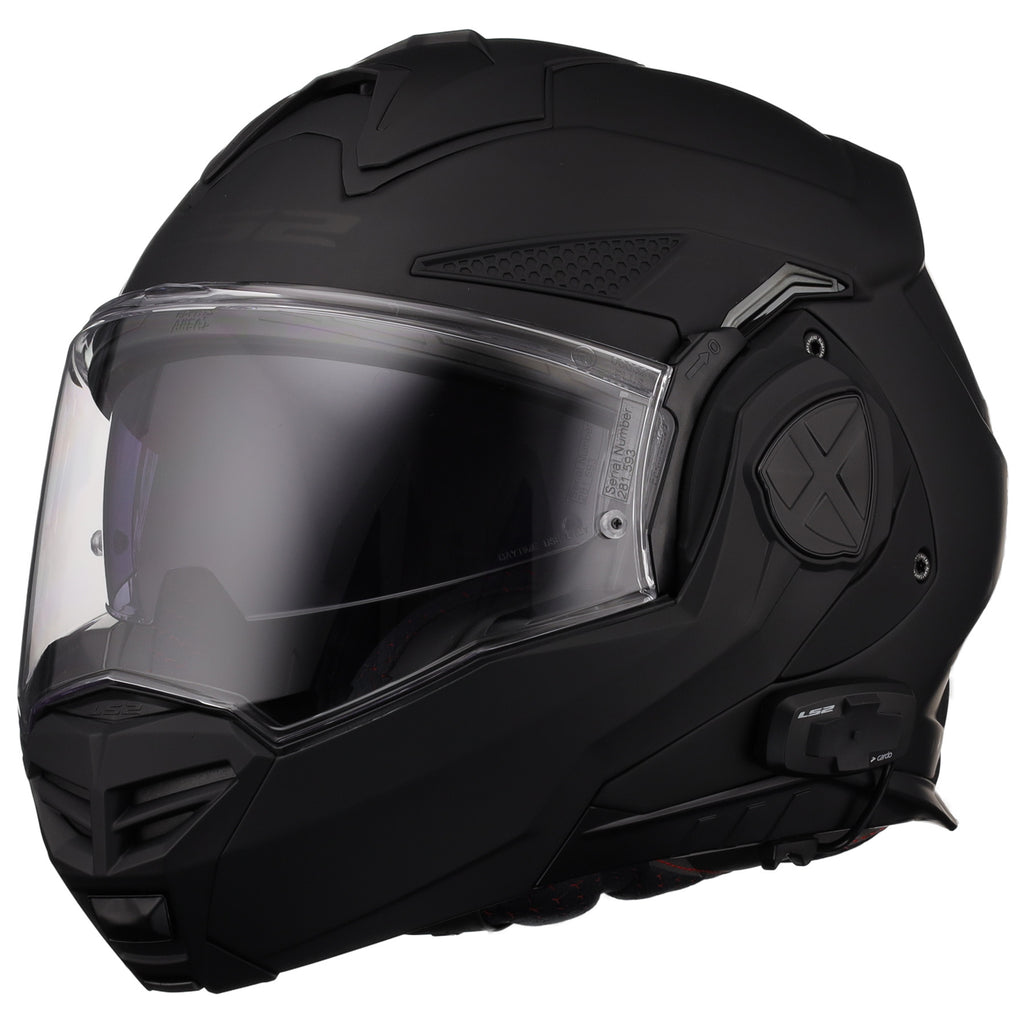 Now with Cardo 4X USC Bluetooth Unit Preinstalled. Discover the LS2 Advant X Helmet, a lightweight, innovative 180-degree flip-front modular helmet offering unparalleled safety and comfort. Made from High Performance Fiberglass Composite with a 180º rotating chin guard, this helmet is 20% lighter than its counterpart, while meeting or exceeding DOT FMVSS 218 and ECE 22.06 safety standards. Rotational energy is managed by LS2’s proprietary Advanced Rotational Energy Management, (AREM). The Advant X provides ultimate comfort with its 180-degree modular system, liner, and 3D laser-cut cheek pads. The "A Class" Polycarbonate face shield and built-in sun shield ensure optimal vision and protection. For the ultimate in fog resistance, the Advant includes a Pinlock insert in the box. Prioritizing safety, the helmet features a DOT-approved Micrometric quick-release chin strap, multi-density EPS, and Emergency Release Cheek Pad System. The adjustable ventilation system keeps you cool, making the Advant X the perfect choice for riders seeking comfort, style, and functionality without compromising safety. DOT approved. Meets the FMVSS 218 Standard.