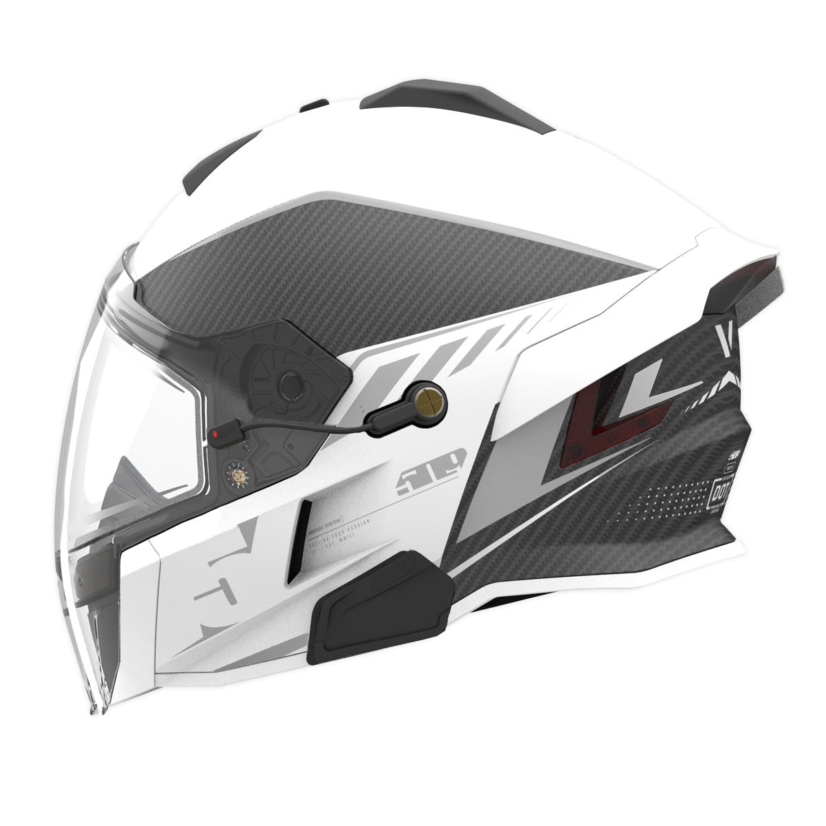 No longer a helmet, now it’s a cockpit. Built for long rides, high speeds, and frigid temps, The Delta V Carbon Commander features an integrated communication system, maximum visibility infinity style shield, and lightweight carbon design. Effortlessly communicate between up to 14 riders with a Cardo Communications system complete with powerful speakers, the best sound and noise cancellation for all your rides. Complete with Venturi Vent Ducting, an integrated spoiler, and low-profile antennae keeping this helmet sleek, quite, and fog-free all day on the trails. DOT approved. Meets the FMVSS 218 Standard.