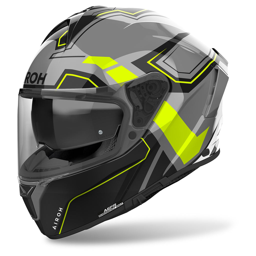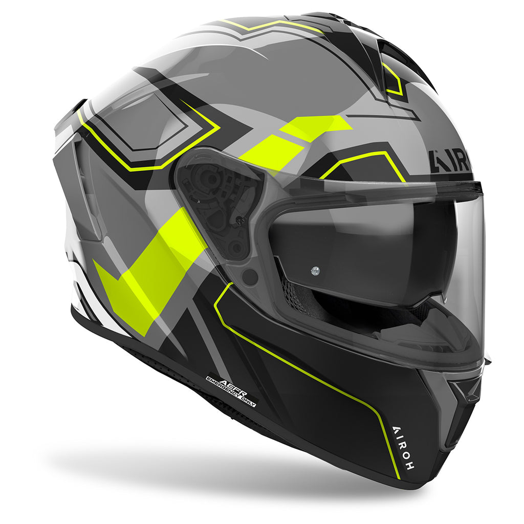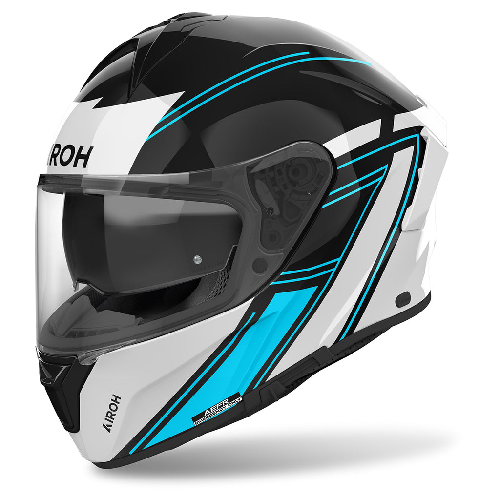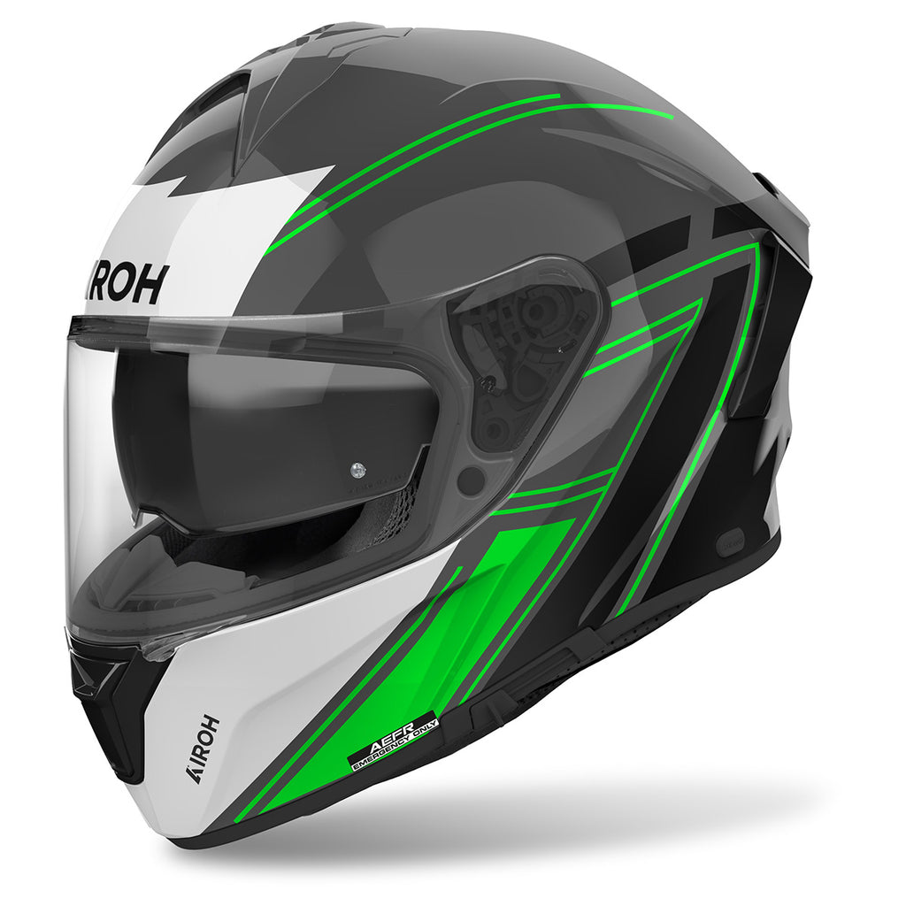 The ATVR (Airoh Tool-less Visor Removal) system allows quick visor changes. The extra-wide vision field enhances awareness while riding. The visor features a secure lock system and comes with scratch and UV-resistant coating.