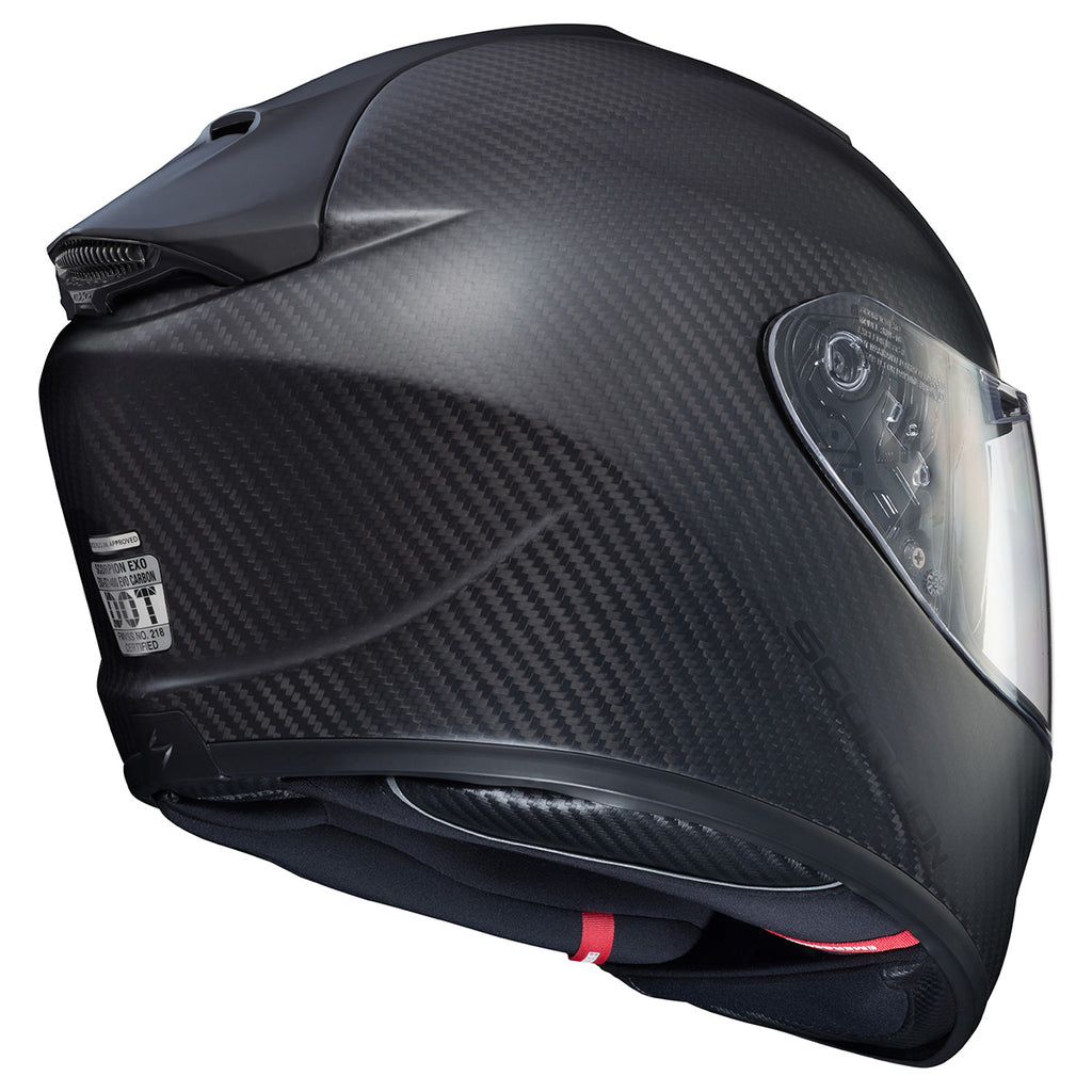 The ScorpionEXO EXO-ST1400 Carbon helmet combines advanced engineering and premium materials in a sleek aerodynamic design. Weighing just 1,383 grams (3.05 lbs), this lightweight helmet features a resin-infused TCT-U 3K carbon fiber shell composite.