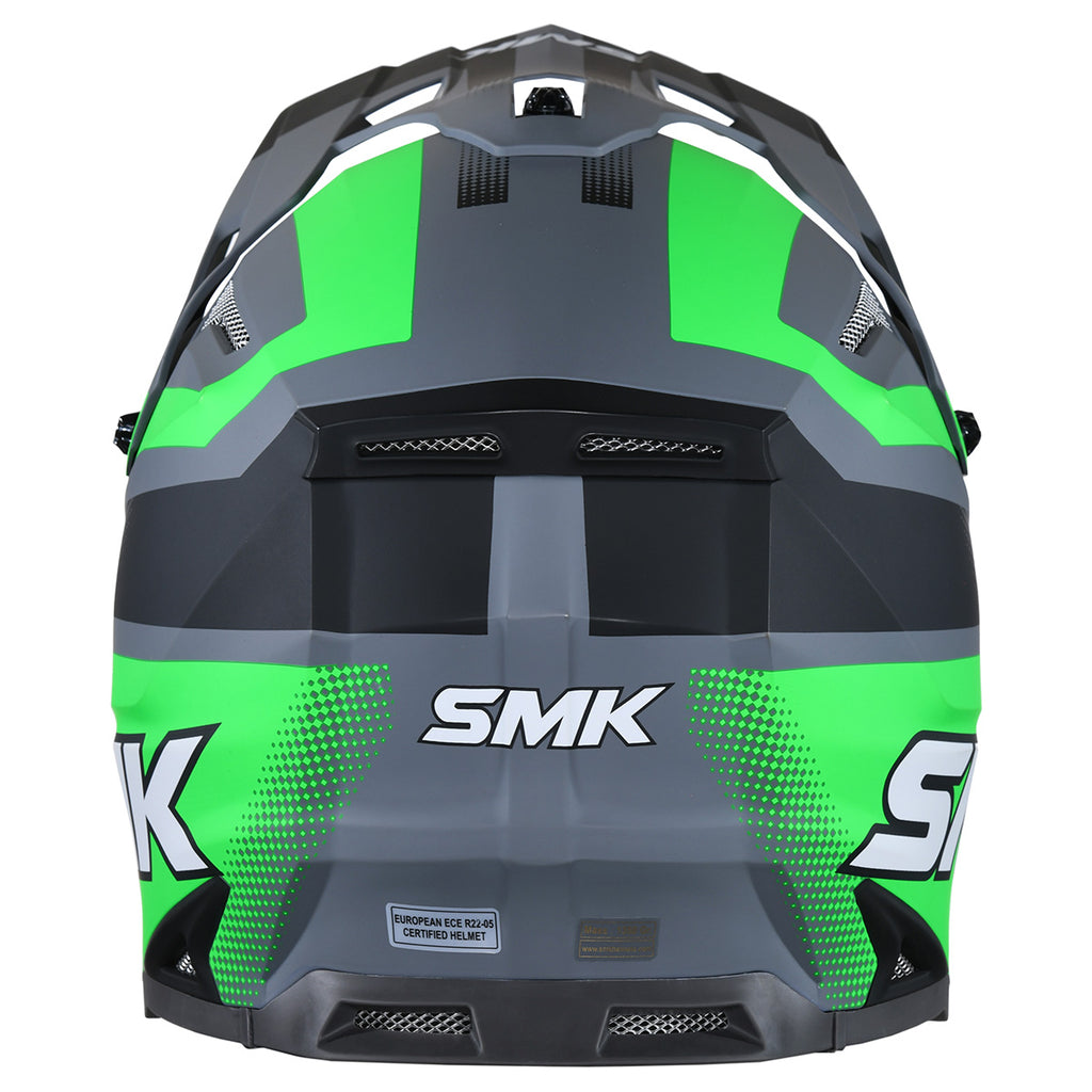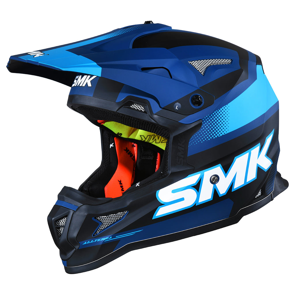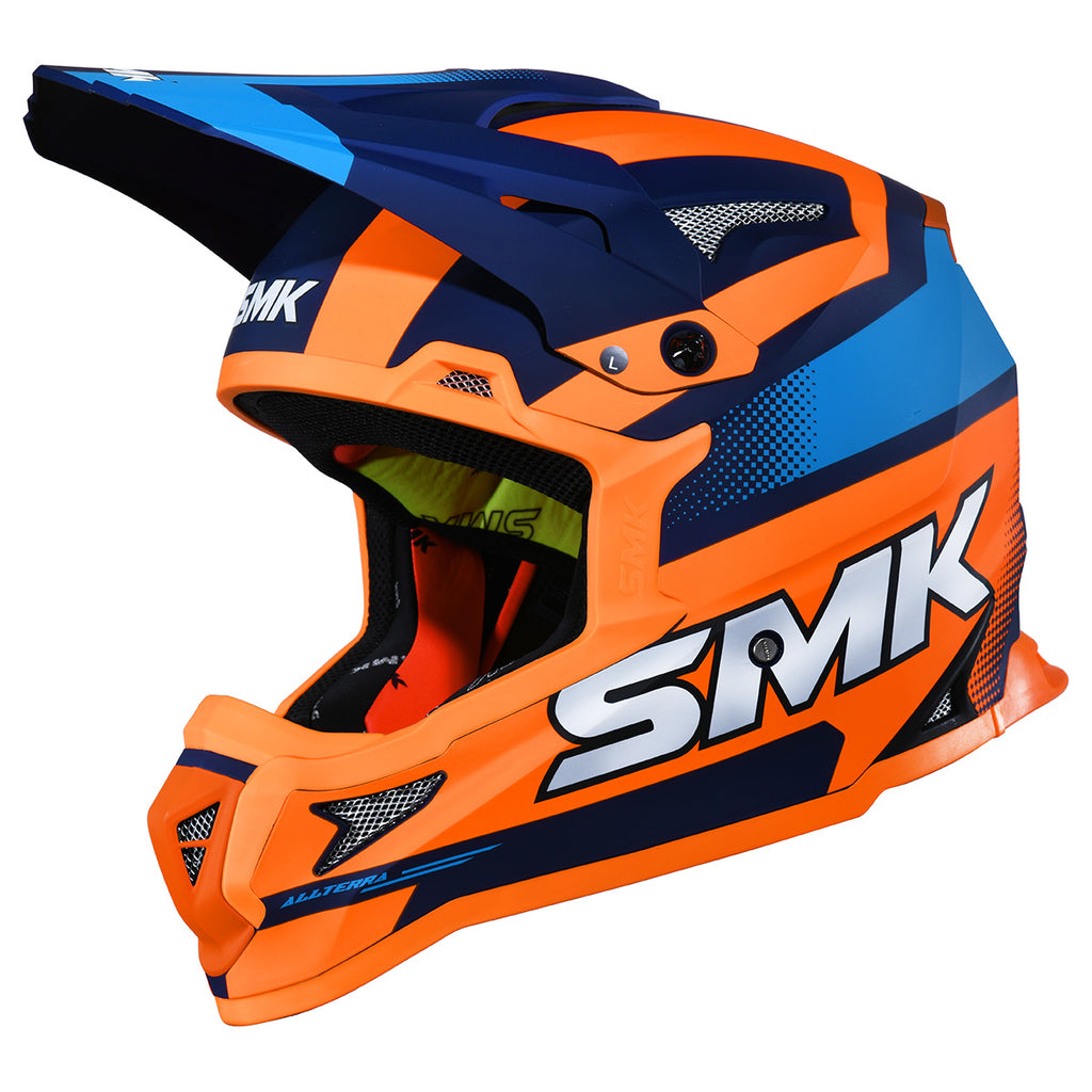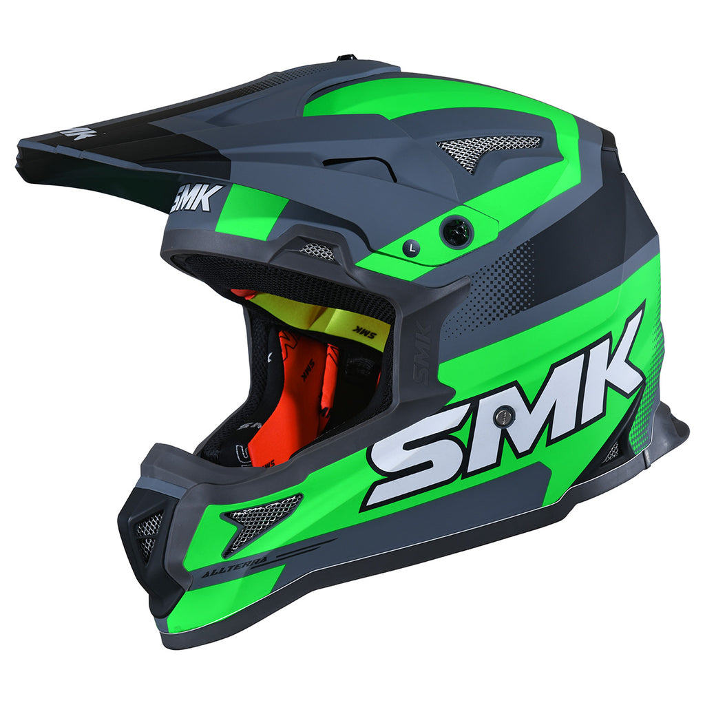 The Allterra Off-Road Helmet is designed for off-road enthusiasts and MX riders. Its lightweight injected EIRT shell provides strength and protection, while the easily adjustable or removable sun peak and extra-wide eye opening accommodate MX goggles for an optimal view. Multiple vents, channeled exhausts, and chin air vents maximize airflow. The helmet features a removable, washable liner for comfort and an intermediate oval fit. Dual-certified DOT and ECE 22.06, it is available in sizes XS to 2XL.