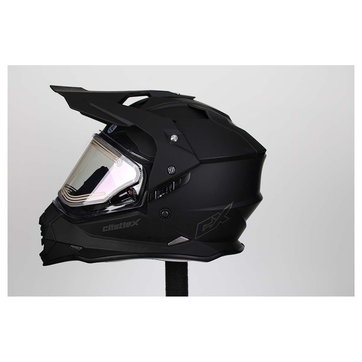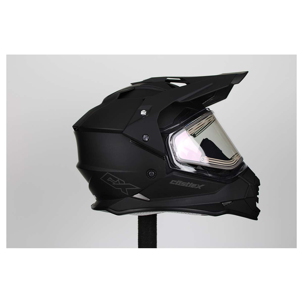 ELECTRIC configuration includes electric dual pane shield, smoke tint sun visor, breath box and cold weather chin curtain. Aggressive, modern shell design created with CAD technology. Shell constructed with Advanced Polycarbonate Composite injection molding. Multi-density EPS liner including placement in chin bar laterals. Hard coated, optically correct dual pane shield utilizes a quick release shield replacement system. Rider friendly drop down sun visor system, fitted standard with Hi-Definition smoke tint sun visor. DOT & ECE Approved. Removable interior padding system offers a plush fit. Eyeglass friendly cheek pads. Quick release chin strap buckle system offers adjustments for secure comfort. Advanced ventilation system allows air to easily flow front to back in the helmet to remove excess heat via the air flow channels in the EPS liner. Removable/replaceable breath box and cold weather chin curtain. Optional shields and sun visors sold separately. DOT approved. Meets the FMVSS 218 Standard.
