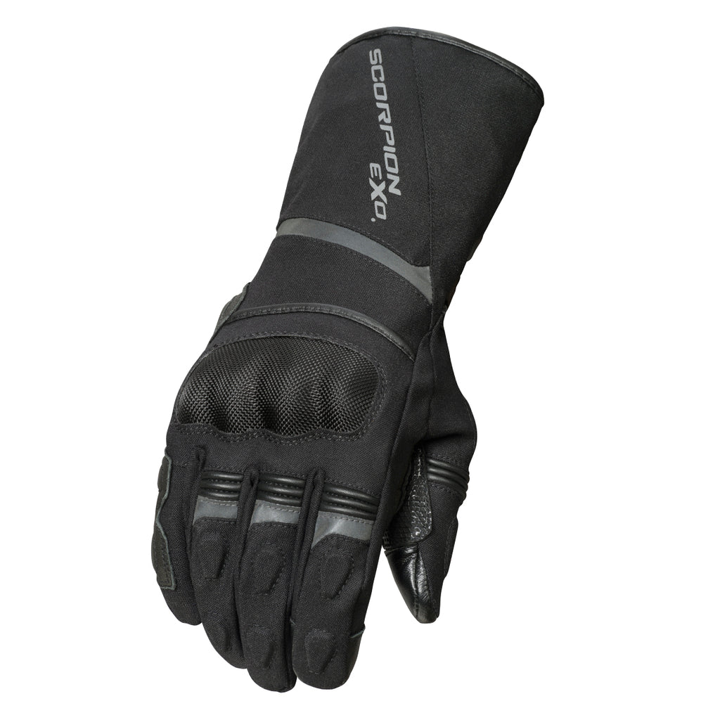 The ScorpionEXO Tempest II Gloves are waterproof, insulated gloves, that feature a unique double gauntlet that prevents water from running down your sleeves or glove while riding. With the exception of the palm, which allows for the use of heated grips, the Tempest II Gloves are insulated with 100g of Thinsulate™ to make sure your hands stay warm and dry. The palm and fingertips feature full grain leather and the knuckles feature a Hard TPU material that is overlayed with 1680D Nylon, making these gloves the perfect choice for harsh conditions!